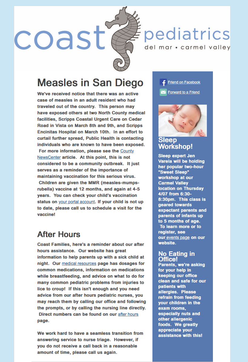 Coast Pediatrics Del Mar Measles Update