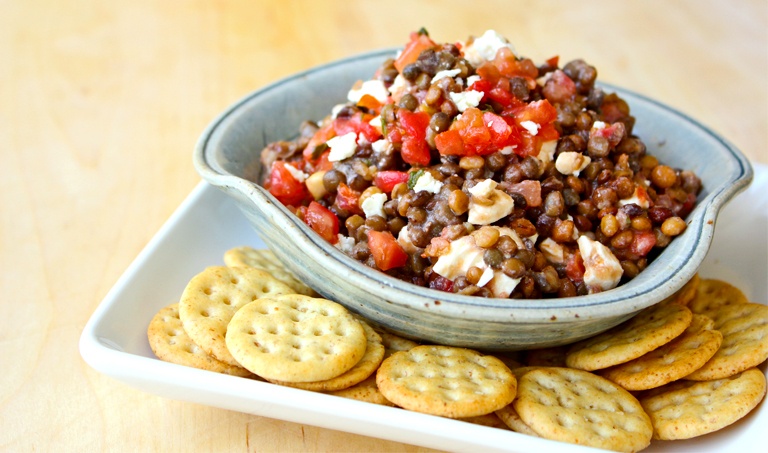 In a medium bowl, combine lentils, feta and bruschetta sauce, then stir. Serve cold with your favorite TJ’s crackers.